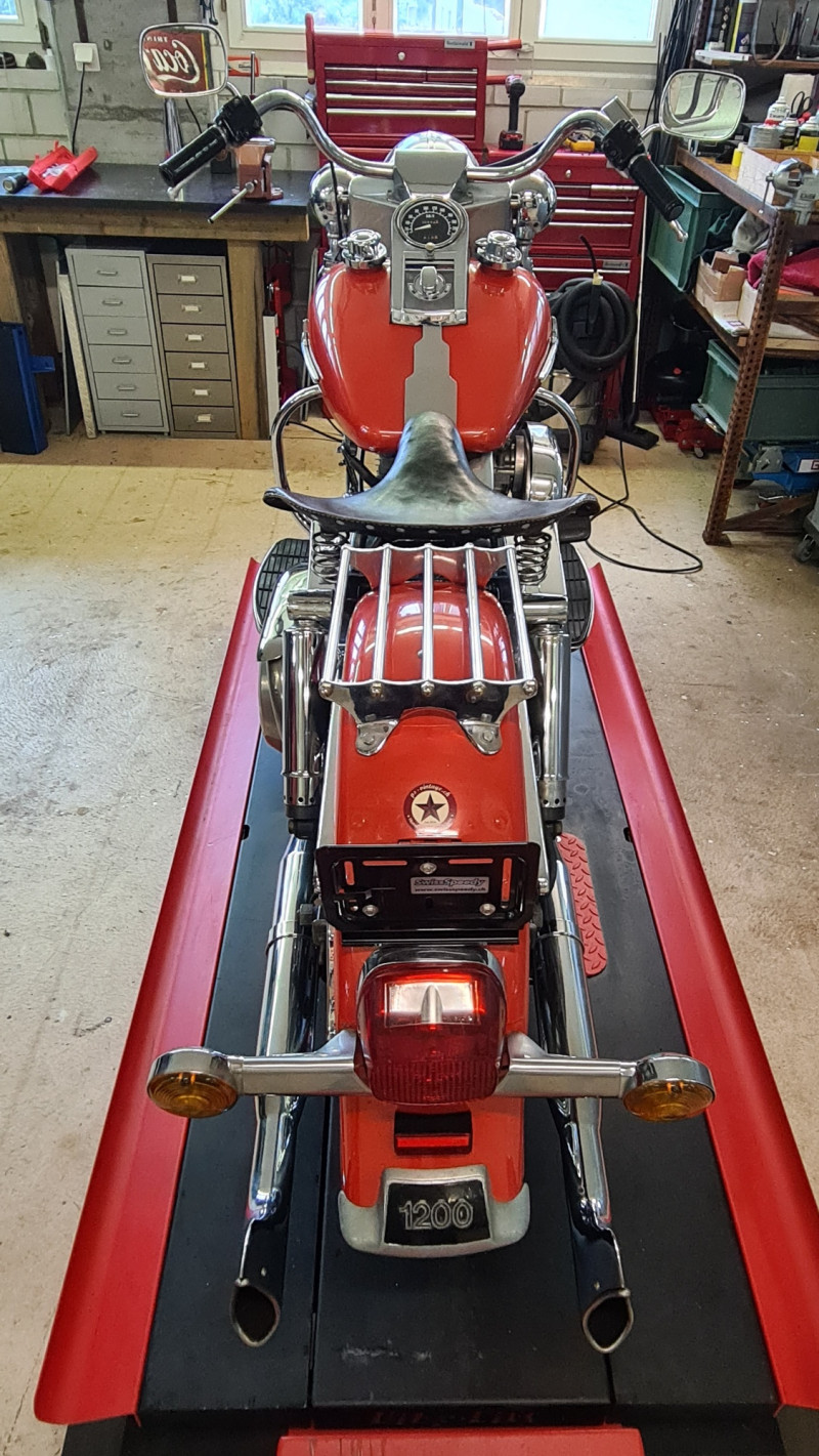 Tolle Shovelhead im alten Saft mit viel Patina. Ab Service und MFK. Neu bereift und Elektrik überarbeitet.
